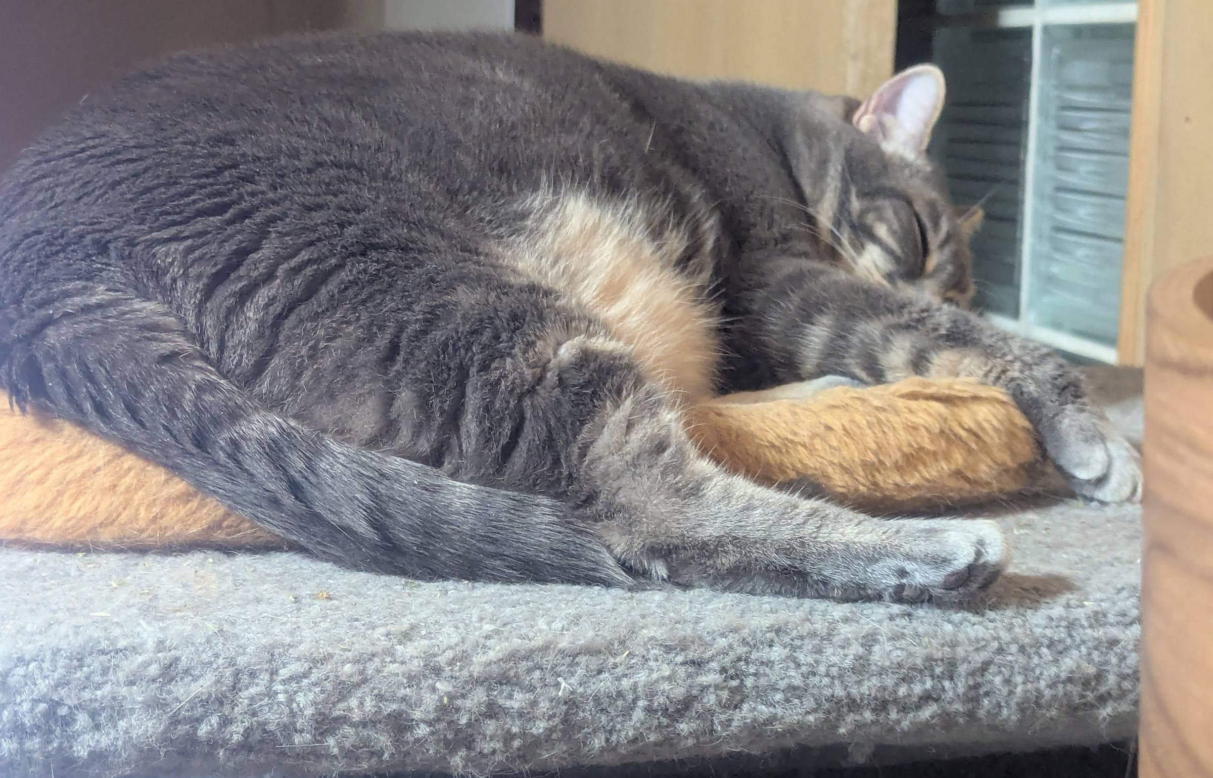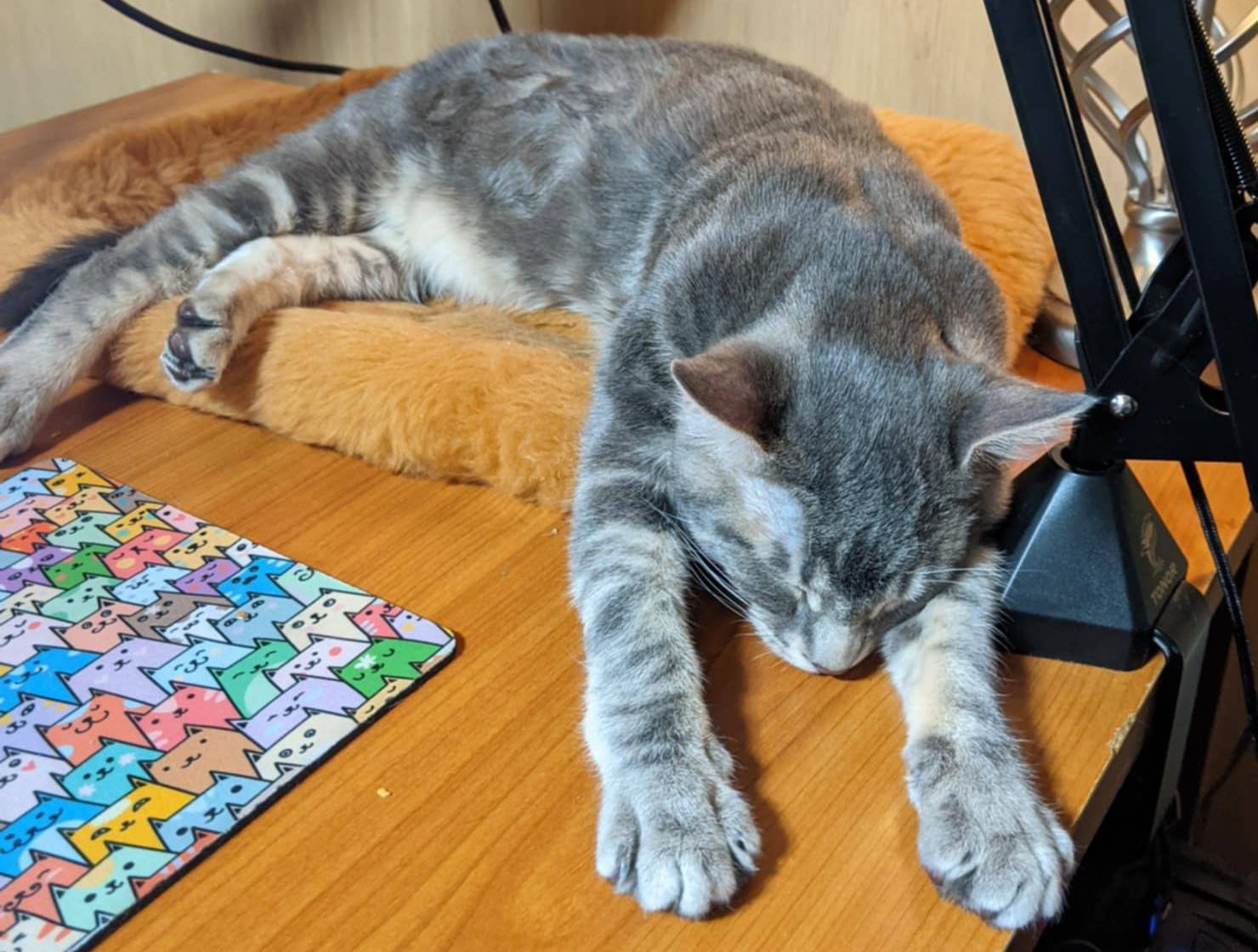 But I'll share pics. First one is my chonky kitty named Greybeard a couple of days ago after he passed out from catnip. Second one is him 4 years ago. My phone shared the baby pic with me and it made my heart squee.